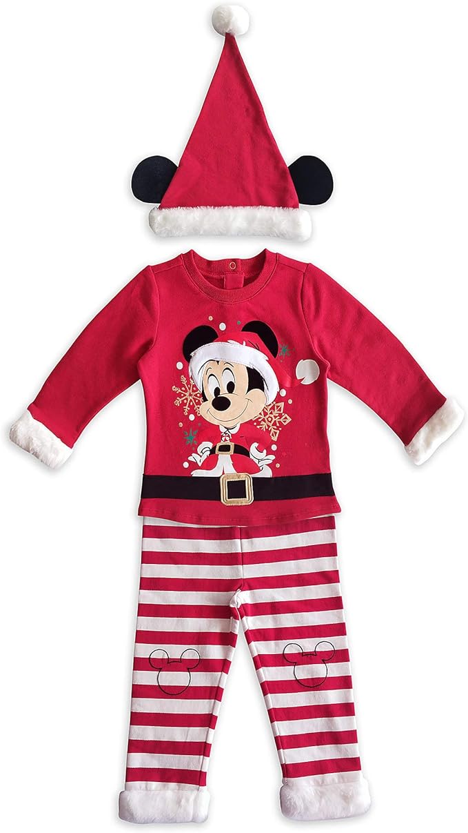 Baby will be decking the halls in Santa Mickey style as they wear this three-piece ensemble. Modeled after Santa's signature outfit, the long sleeve shirt, pants, and hat come complete with fuzzy trims and festive flair.