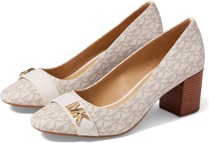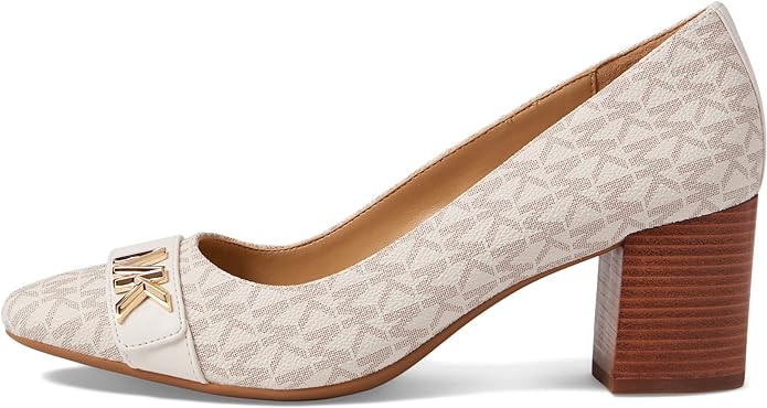 Complement your chic style, from the desk to dinner, in the MICHAEL Michael Kors Jilly Flex Pump. Slip on style. Round toe silhouette. Strap with metal branding badge on vamp. Covered block heel. Man-made upper, lining and insole. Rubber outsole.
